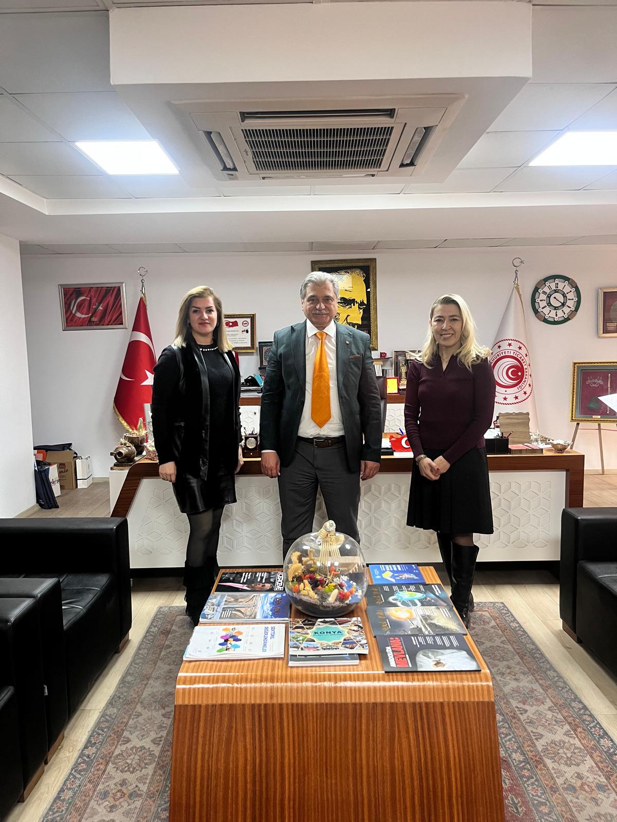 Konya Sanayi ve Ticaret İl Müdürü Mustafa Çağlayan önceki gün kısa adı KONGUSİD olan Konya Güzellik Uzmanları ve Salon İşletmecileri Derneği Başkanı Hatice Patlak’ı misafir etti.