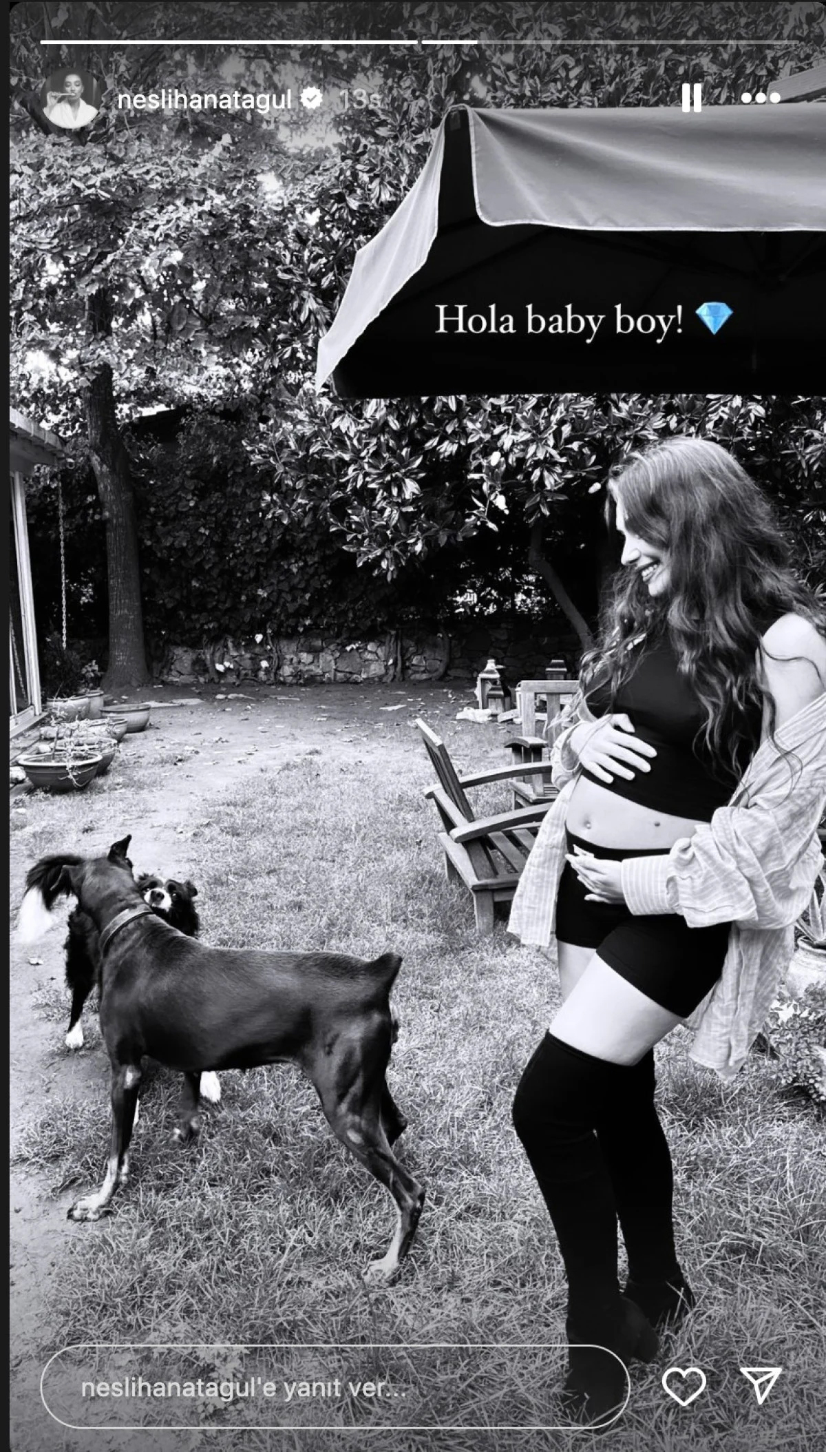 Üç aylık hamile olan Neslihan Atagül, bebeğin erkek olduğunu duyurmuştu. Hamileliği boyunca sekiz kilo aldığını ve isim konusunda henüz karar vermediklerini belirtmişti. Atagül karnı burnunda pozlarına bir yenisini daha ekledi.